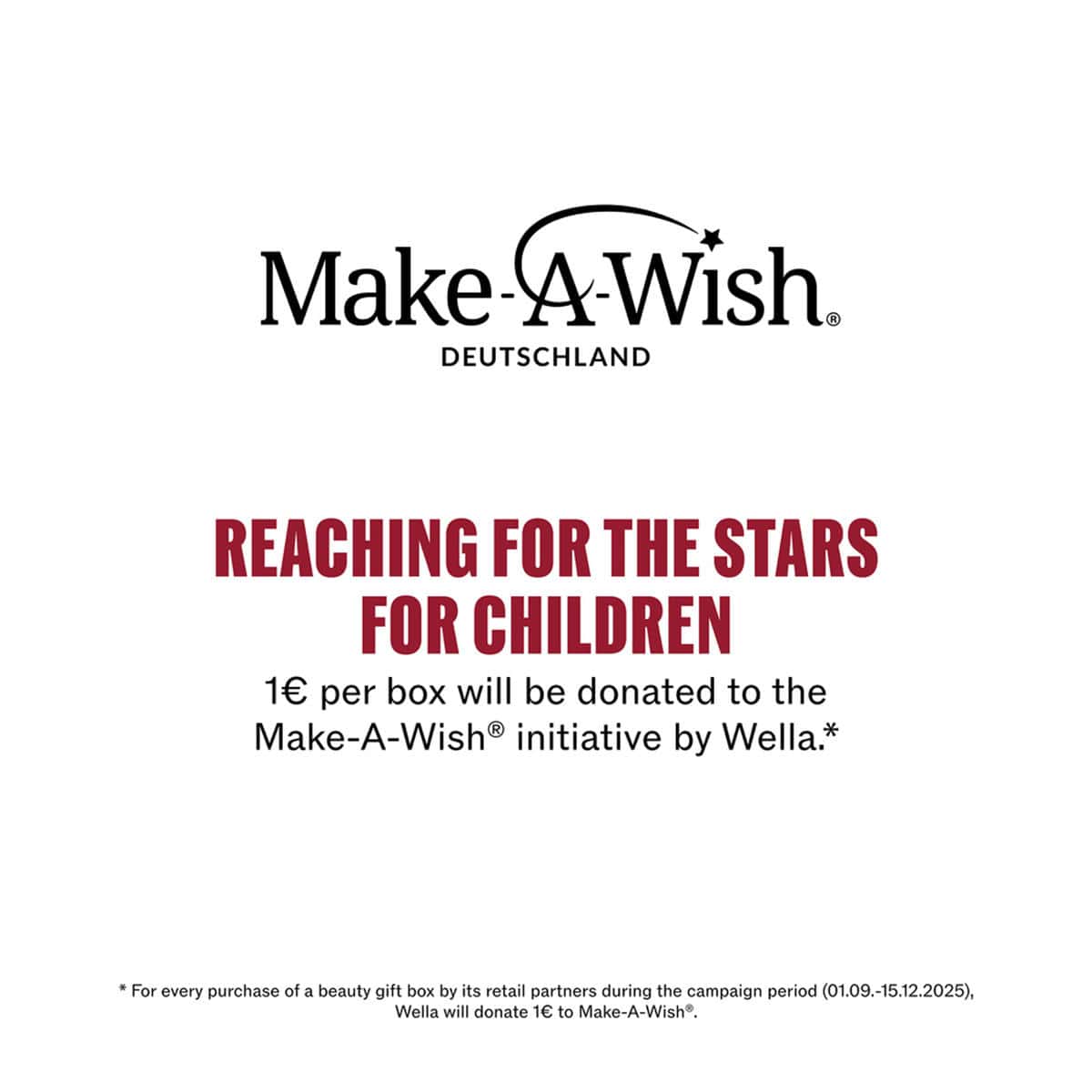 Noch schöner: Für jedes Beauty-Geschenkset, das im Aktionszeitraum (01.09.–15.12.2025) über Wella Handelspartner verkauft wird, geht 1 € an Make-A-Wish® – eine Organisation, die schwer kranken Kindern Herzenswünsche erfüllt. Mehr Infos: www.makeawish.de.