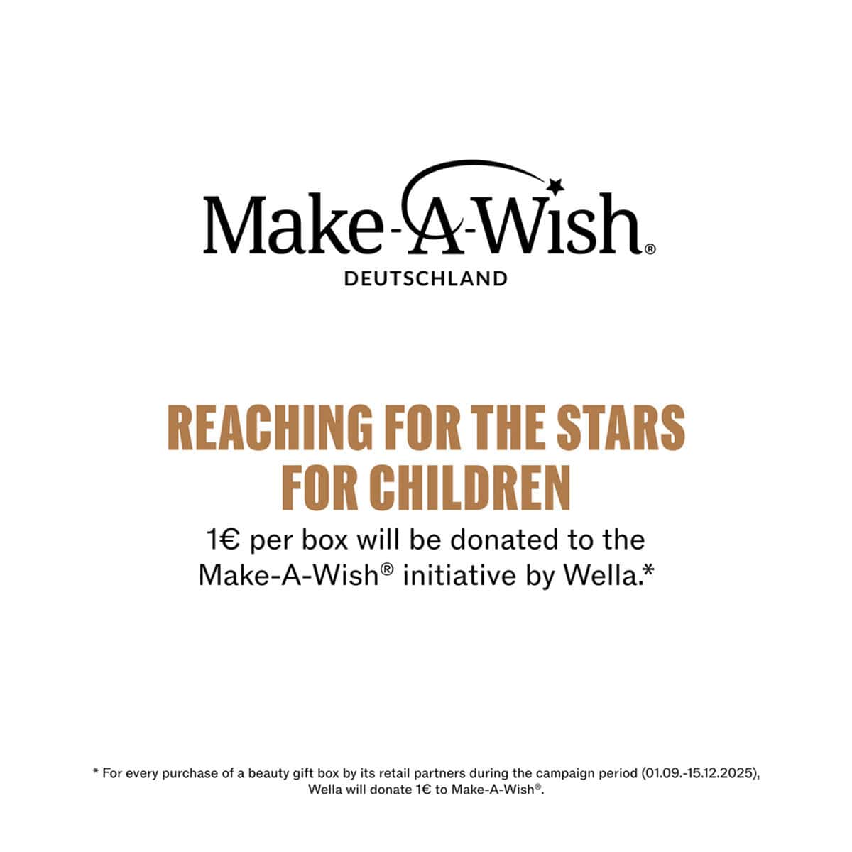 Noch schöner: Für jedes Beauty-Geschenkset, das im Aktionszeitraum (01.09.–15.12.2025) über Wella Handelspartner verkauft wird, geht 1 € an Make-A-Wish® – eine Organisation, die schwer kranken Kindern Herzenswünsche erfüllt. Mehr Infos: www.makeawish.de.